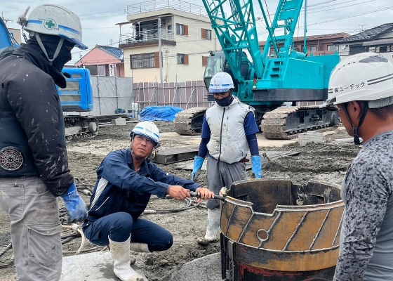 重機オペレーターとしてクレーンやショベルカーを操作し、杭の撤去作業をしています。